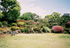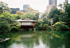 池泉回遊式の日本庭園は池の周りに石橋や飛石が配置されて、こじんまりとした独特な趣があります。